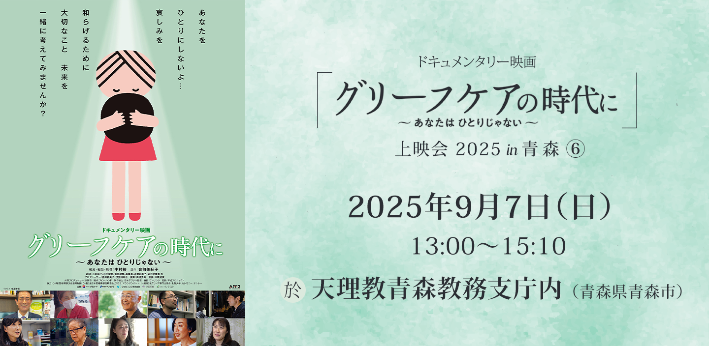 令和7年9月7日(日) 午後13時~15時、ドキュメンタリー映画「グリーフケアの時代に~あなたはひとりじゃない~」上映会⑥を天理教青森教務支庁(青森市西滝2丁目12番地1)にて開催いたしました。
