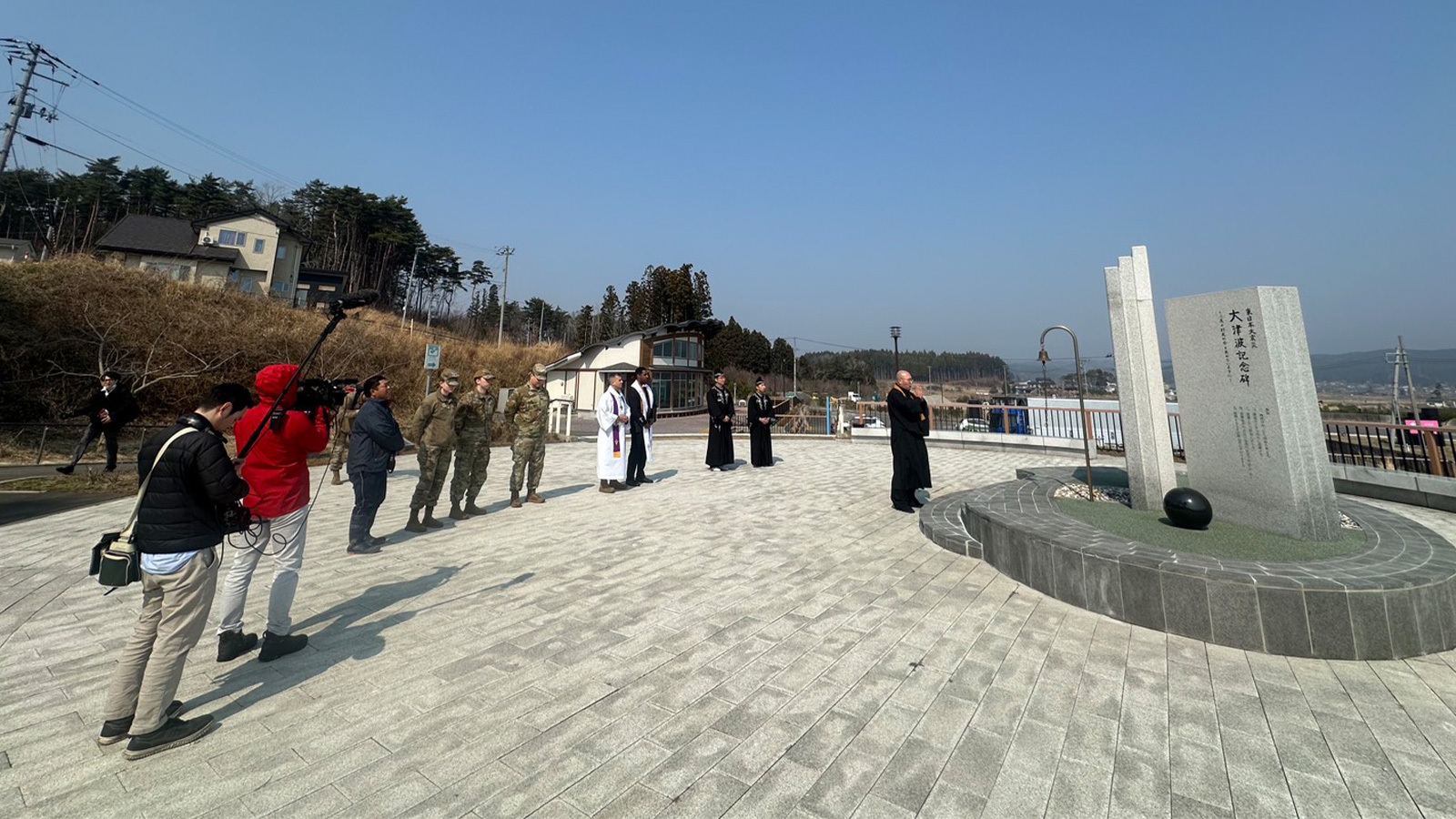 日米それぞれの宗教者が交互に祈りを捧げ、その後チャプレンが一団を代表して祈りの霊句を唱えました。その場において、臨床宗教師や随行の米兵らがそれぞれに頭を垂れ、あるいは手を合わせる姿が自然に生まれ、「共に祈る」という静かな連帯のひとときが形成されました。